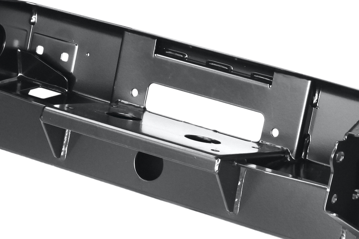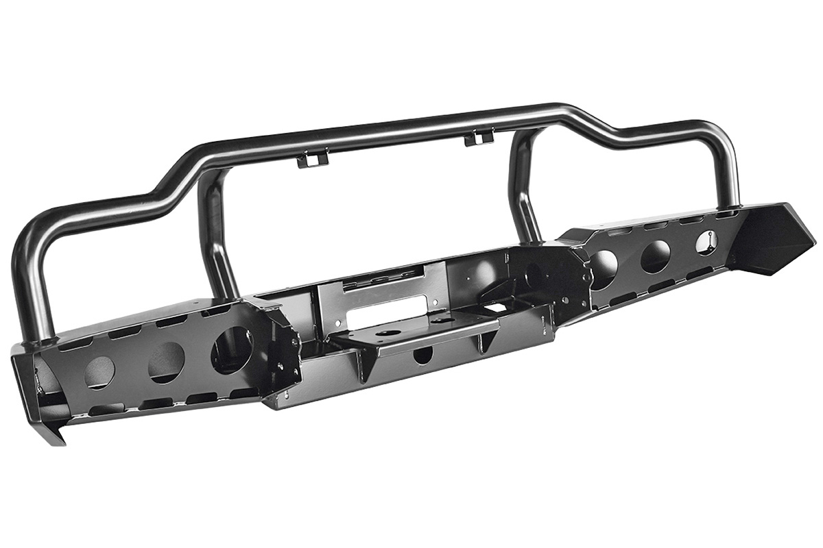 La defensa RIF ofrece puntos de elevación de alta elevación reforzados y ojos de remolque para arrebatar o remolcar correas. Los rigidizadores internos cuidadosamente diseñados proporcionan la máxima fiabilidad para la barra de toro para que pueda soportar altas cargas e impactos. Resistente incluso a los productos químicos más agresivos, el recubrimiento en polvo negro evita la corrosión en cualquier entorno.