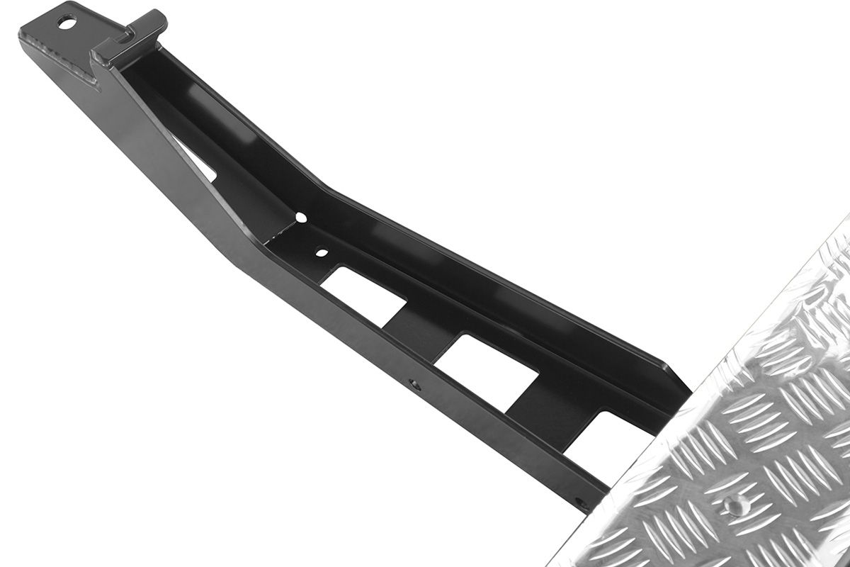 Los estribos RIF le ayudan a subir fácilmente a los vehículos de gran altura, mientras que la práctica cubierta de aluminio acanalado se adapta a cualquier tipo de suela.